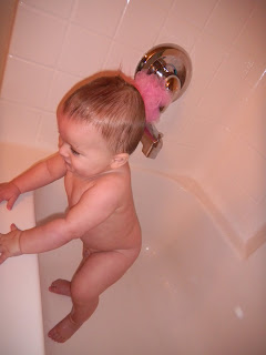 11 months old! His favorite things to do are crawling up the stairs, which he figured that out a few weeks ago. Walking all around the house with his walking "walker toy". Playing with any type of ball (golf balls, baseballs, toy balls etc.) He loves to watch mickey mouse clubhouse and dances to the "hot dog" song. He is so much fun, he has brought so much joy and happiness into our lives. He also had to get tubes in his ears which was for the best (i was so sad, but i knew he needed them and it would be better in the long run). Of course he still loves his bath time, especially now that he actually plays with toys in there. He gets mad for a second when i take him out, he could be in there all day. It's crazy how time goes by so fast i can't believe our little guy is almost 1 year old this week!!
